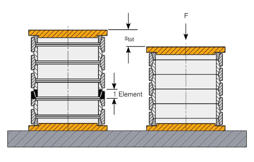 Über reine Federsäulen hinaus stehen unsere leistungsstarken RINGFEDER® Reibungsfedern ebenso als vollständige, anwendungs- und kundenspezifisch ausgelegte Pufferausführungen in unterschiedlicher Form und Größe für diverse Einsatzzwecke zur Verfügung, z.B. im Maschinenbau, in der Rohstoffgewinnung und -verarbeitung oder in der Luft- und Raumfahrtindustrie. Häufige Ausführungsformen sind bspw. auch Zug-Druck-Einrichtungen als hocheffektive Schwingungsdämpfer oder -tilger sowie Rutschkupplungen zum sicheren Schutz vor Überlasten.