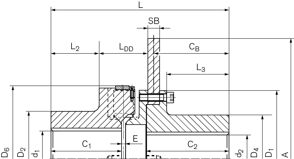 Three-part design coupling with VKR buffers - Like BHD, but with brake disk
