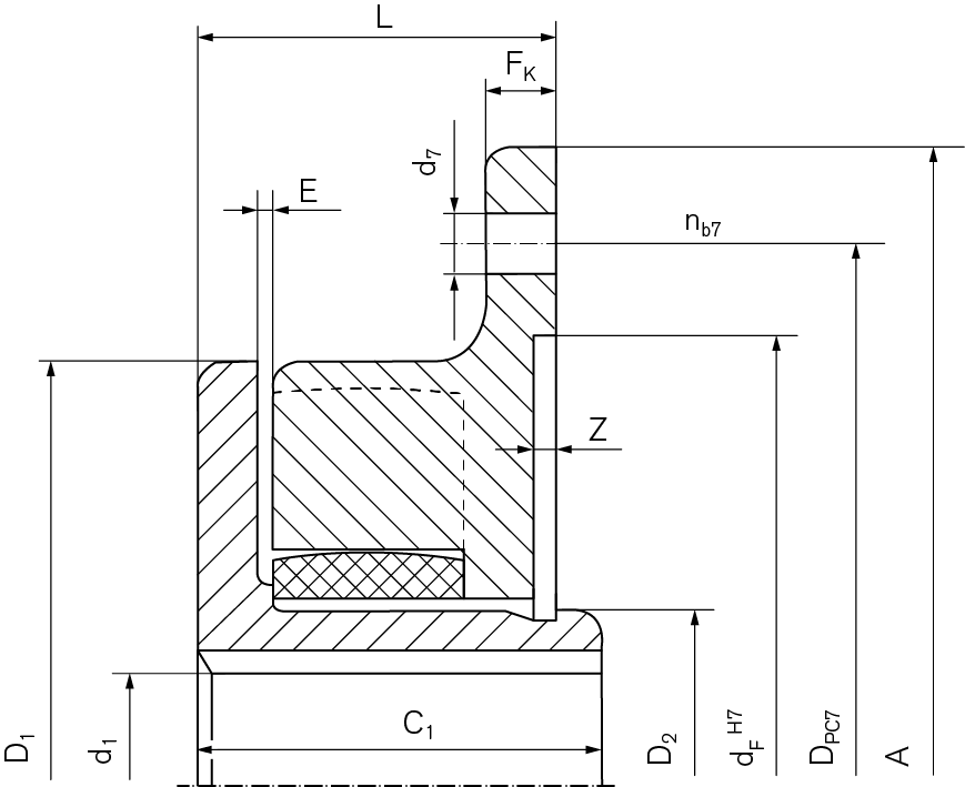 The elastic intermediate rings of RINGFEDER® TNS are made of butadiene-nitril-rubber (Pb82) or polyurethane (VkR). The black buffer (Pb82) are normally electrically conductive and therefore prevent undesirable electrostatic charges. The red (VkR) ring ensure electrical insulation between connected machines as long as there are no other electrically conductive connections. The resilience of the individual elastomer materials is designated by their Shore hardness. From these values an indirect conclusion can be drawn with respect to the torques the coupling is able to transmit and its spring stiffness. For further details, please see the technical data sheet.