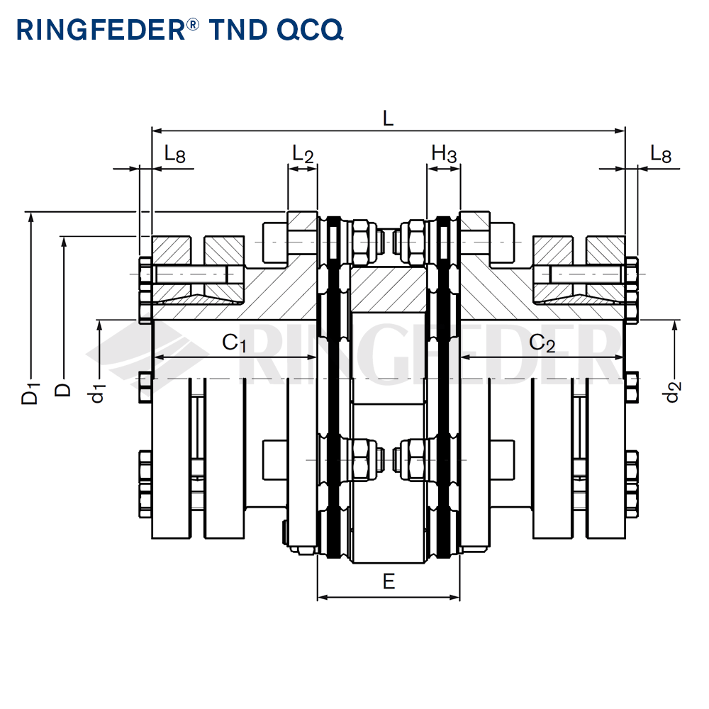 Moreover, please observe the detailed selection and operating criteria in the documents Product Paper Steel Disc Couplings RINGFEDER® TND and Tech Paper Steel Disc Couplings RINGFEDER® TND QCQ.