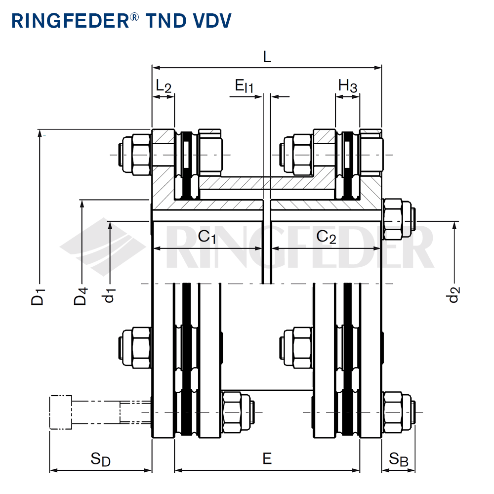 Moreover, please observe the detailed selection and operating criteria in the documents Product Paper Steel Disc Couplings RINGFEDER® TND and Tech Paper Steel Disc Couplings RINGFEDER® TND VDV.