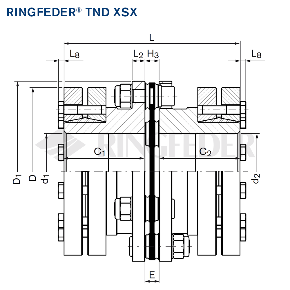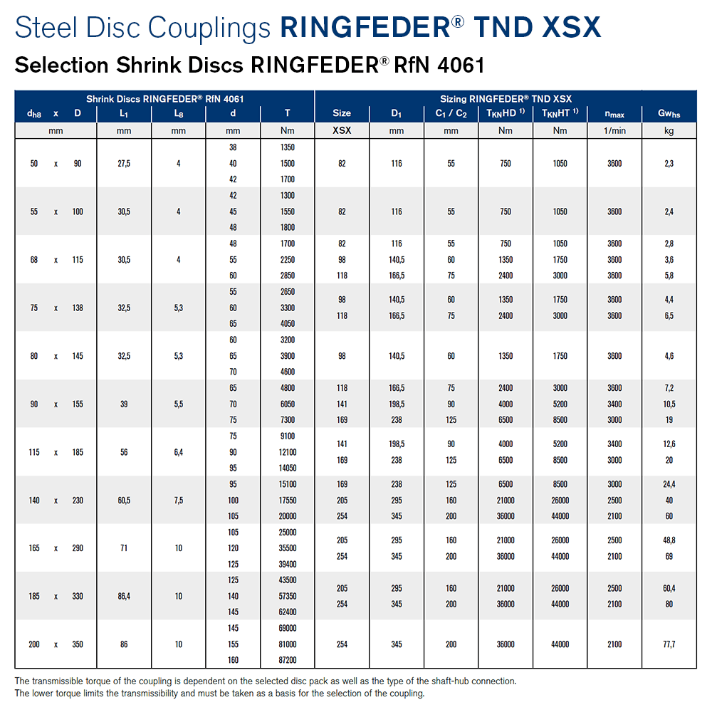 Moreover, please observe the detailed selection and operating criteria in the documents Product Paper Steel Disc Couplings RINGFEDER® TND and Tech Paper Steel Disc Couplings RINGFEDER® TND XSX.
