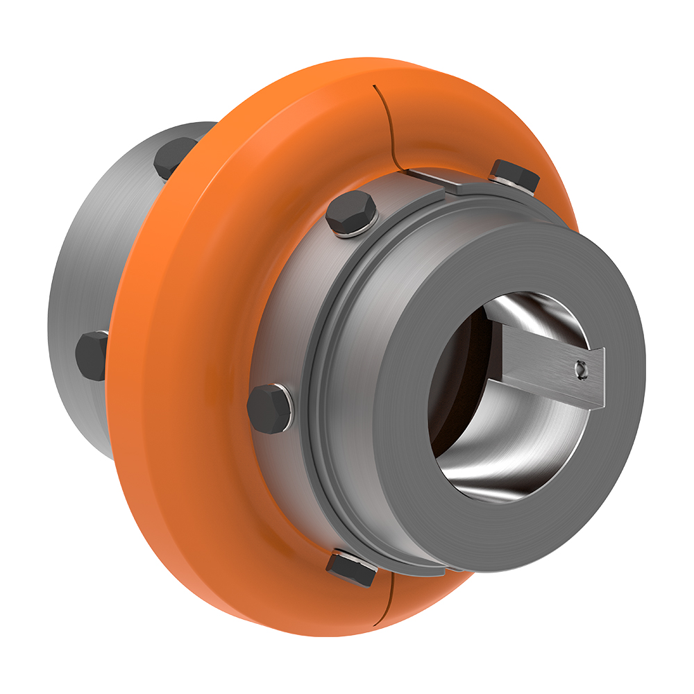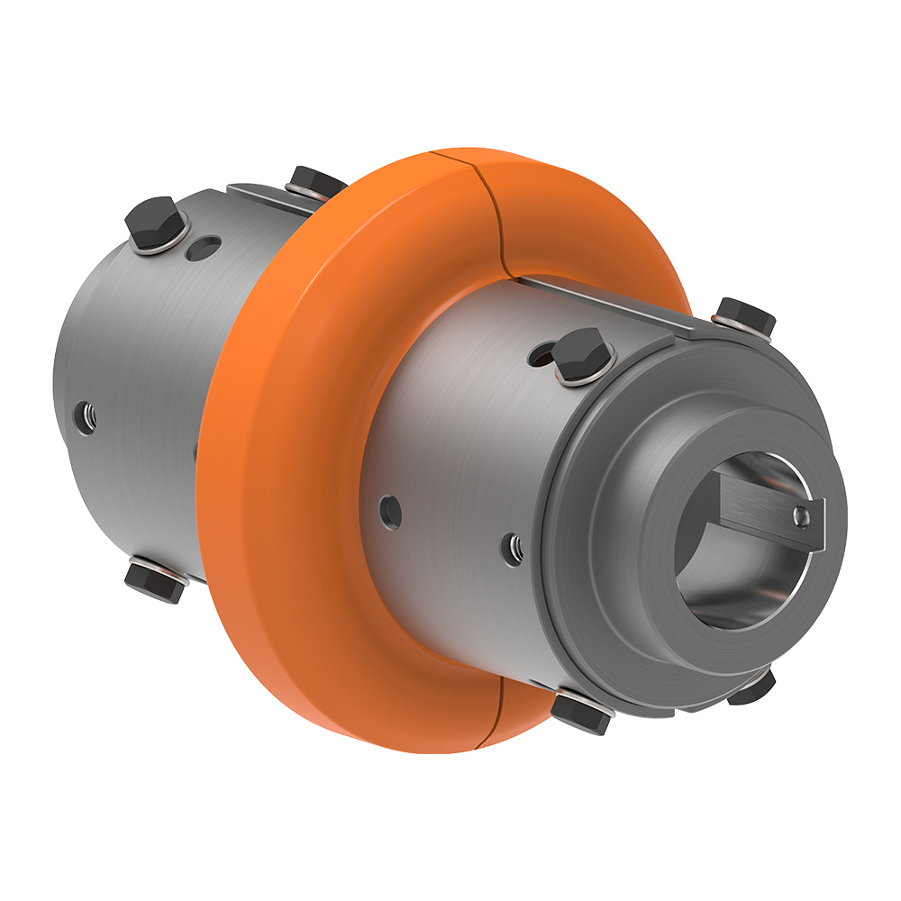 The RINGFEDER® Tyre Couplings of the RLU series are robust, flexible couplings for industrial applications with high demands on flexibility and reliability. The split tyre profile is connected to a metal holder and is mounted radially on the hubs - this enables quick and easy assembly and disassembly without having to move adjacent machine components.